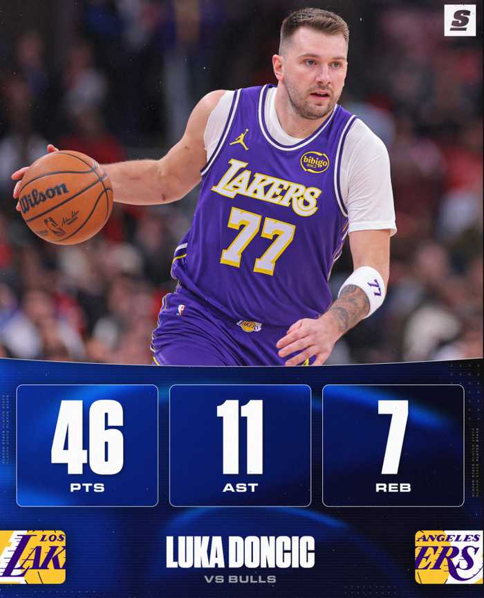 卢卡-东契奇在对阵公牛的比赛中,第三节单节狂轰20分,全场比赛38分钟,25中15,三分14中8,拿到46分11助攻7篮板,命中率60%,三分命...
